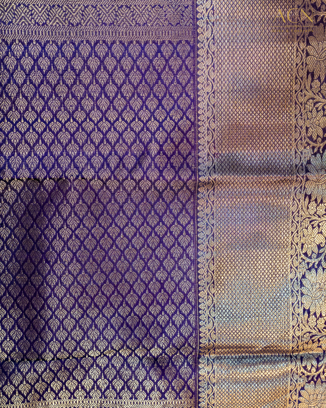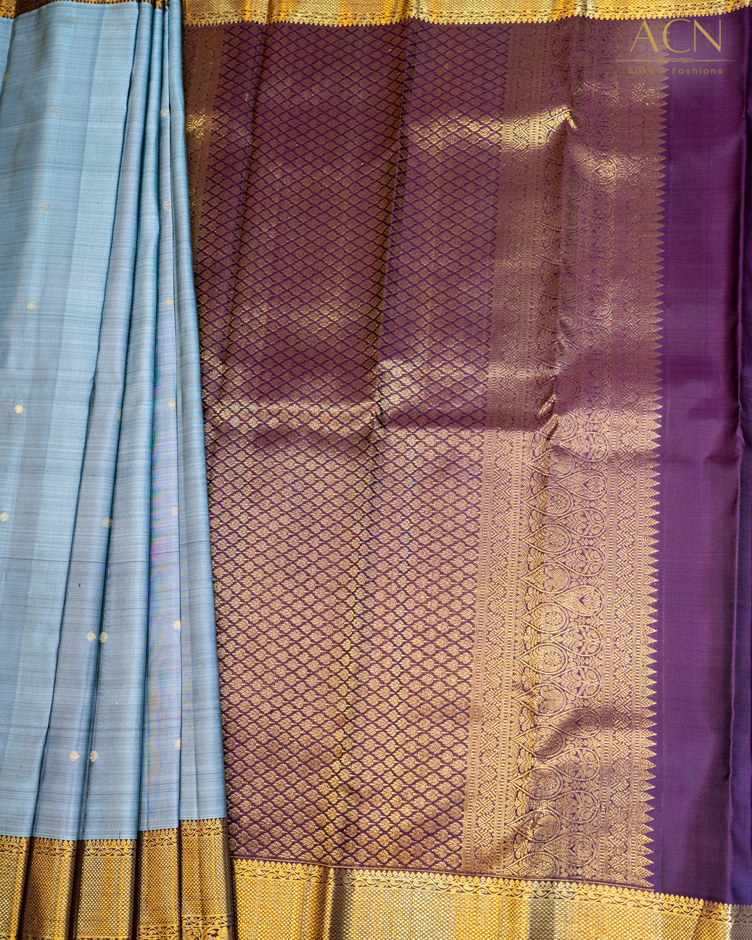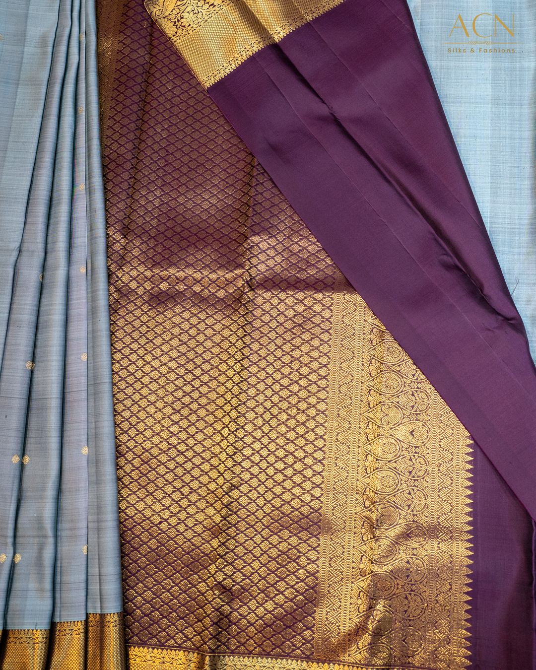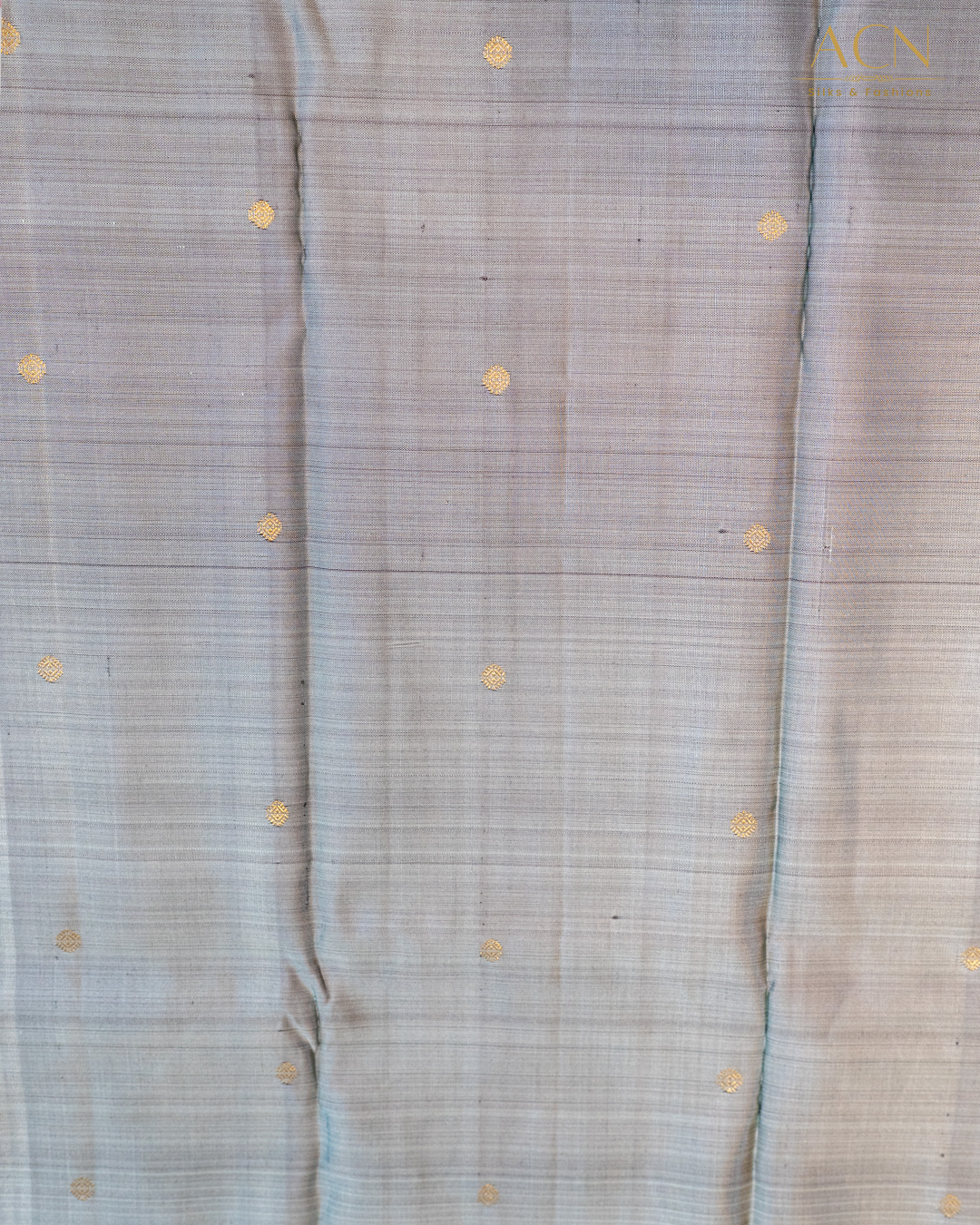 Traditional kancheevaram saree with contrast pallu and border and with beautiful rudraksh buttas all over the saree