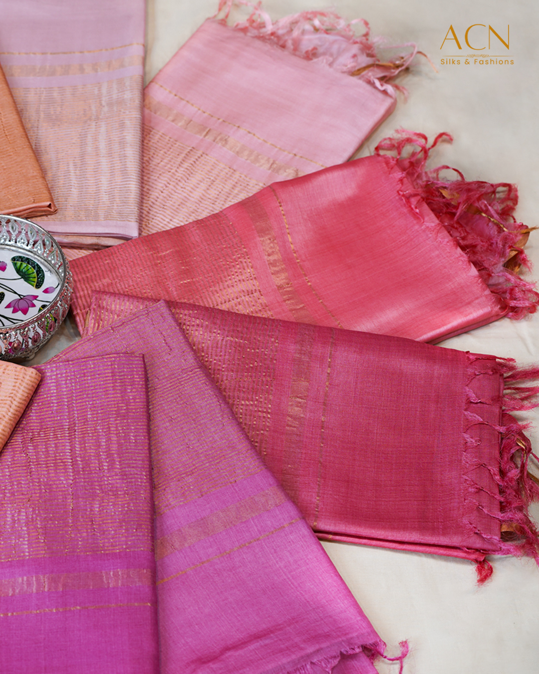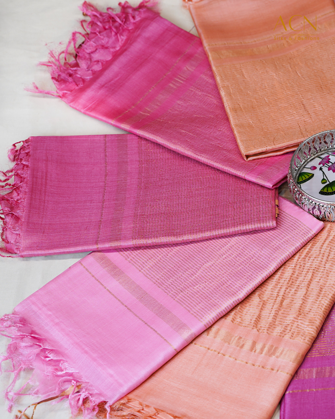 Pure Tussar silk light weight sarees in beautiful pastel shades
